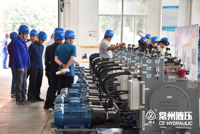 在南湾灌区平桥闸项目建设中,我司承制工作闸门液压启闭机设备多套,常州液压相关人员陪同与会人员参观了生产车间,了解了常州液压的装备能力及相关生产工艺。