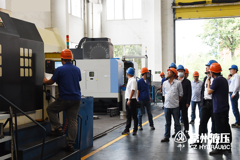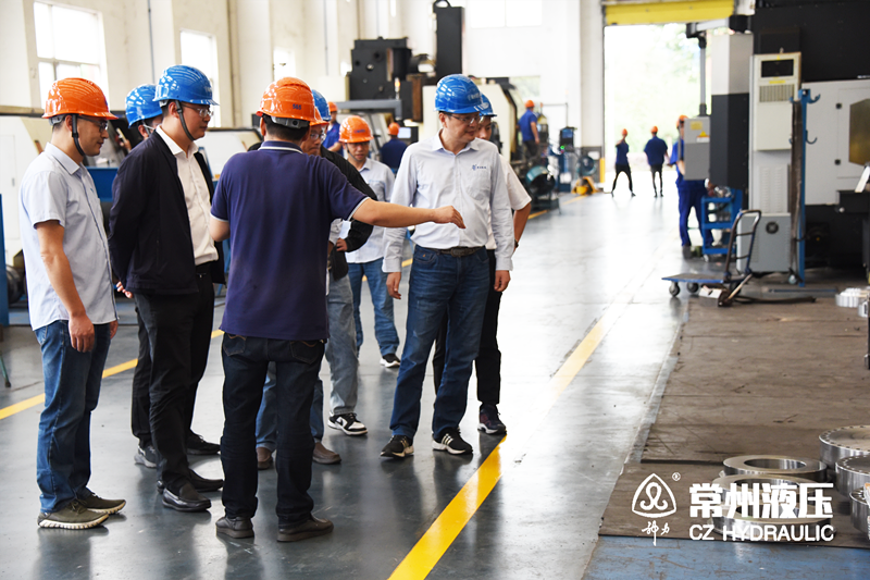 下午,与会的山东潍坊抽水蓄能有限公司衣传宝书记一行在我司相关领导的陪同下参观了常州液压车间现场。常州液压车间负责人就工厂设备、生产、管理、工作流程等向各位领导作了详细介绍。业主单位对工厂管理、公司产品工艺及品质给予了认可及肯定。