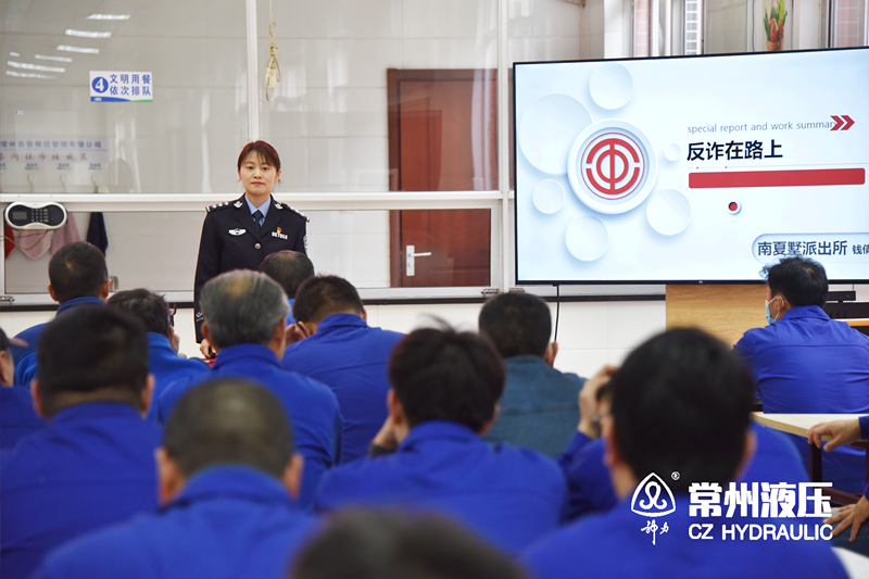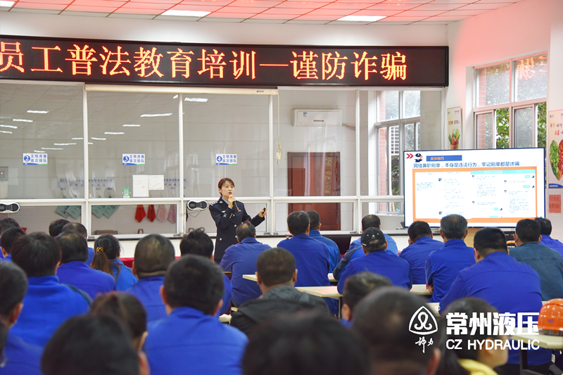 摘要:2022年11月9日,为提高员工防范意识,保护员工的财产安全,常州液压成套设备厂有限公司邀请了常州市公安局武进分局警官到厂开展“谨防诈骗”专题教育培训。