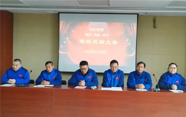 摘要:2022年1月30日,常州液压、神鑫、神力召开2021年度总结大会。今年疫情形式依旧严峻,公司积极响应政府号召,特将会议定为线上模式,各相关部门在分会场收看。会议由金总主持,首先由蔡总做2021年度工作总结报告,接下来由沈总宣读年终考核评比,张总宣读技改奖励公告,贡总宣读放假通知,金总宣读春节防疫书,王总宣读